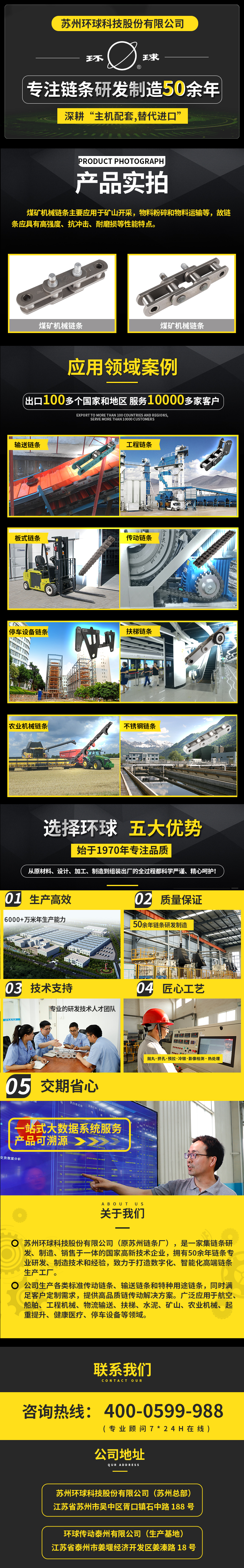公司簡介 環(huán)球傳動(dòng)(原蘇州農(nóng)機(jī)配件廠)始建于1970年,是一家集鏈條、軸承和智能系統(tǒng)研發(fā)、制造、銷售于一體的高新技術(shù)企業(yè),是中國鏈傳動(dòng)行業(yè)重點(diǎn)骨干企業(yè)和專精特示范企業(yè)。擁有50年鏈條專業(yè)研發(fā)、制造技術(shù)和生產(chǎn)經(jīng)驗(yàn),致力于打造數(shù)字化、智能化的高端鏈條生產(chǎn)基地。公司生產(chǎn)各類傳動(dòng)鏈、輸送鏈、曳引鏈和特種用途鏈條,滿足客戶定制。廣泛應(yīng)用于工程機(jī)械、物流輸送、自動(dòng)扶梯、水泥、礦山、農(nóng)業(yè)機(jī)械、起重提升、停車設(shè)備等領(lǐng)域。
