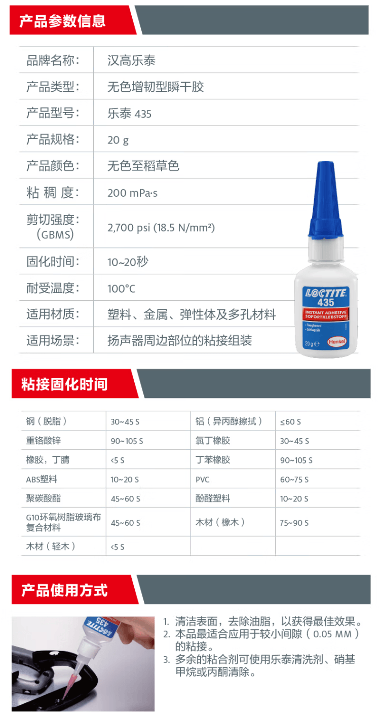 漢高樂泰435瞬干強力膠 快速固化塑料金屬橡膠和彈性材料 寧波膠水批發