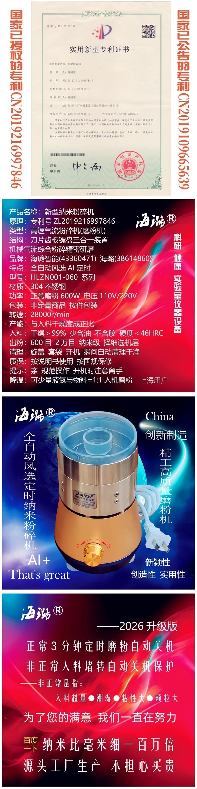出口德日英美高質(zhì)量磨粉機(jī)世間先得全自動風(fēng)選定時海璐納米粉碎機(jī)產(chǎn)品名稱:新型納米粉碎機(jī)