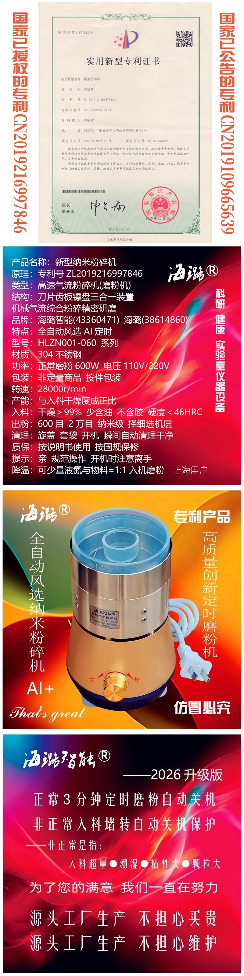 • 新材料高質量創新科研磨粉機全自動風選AI定時海璐智能