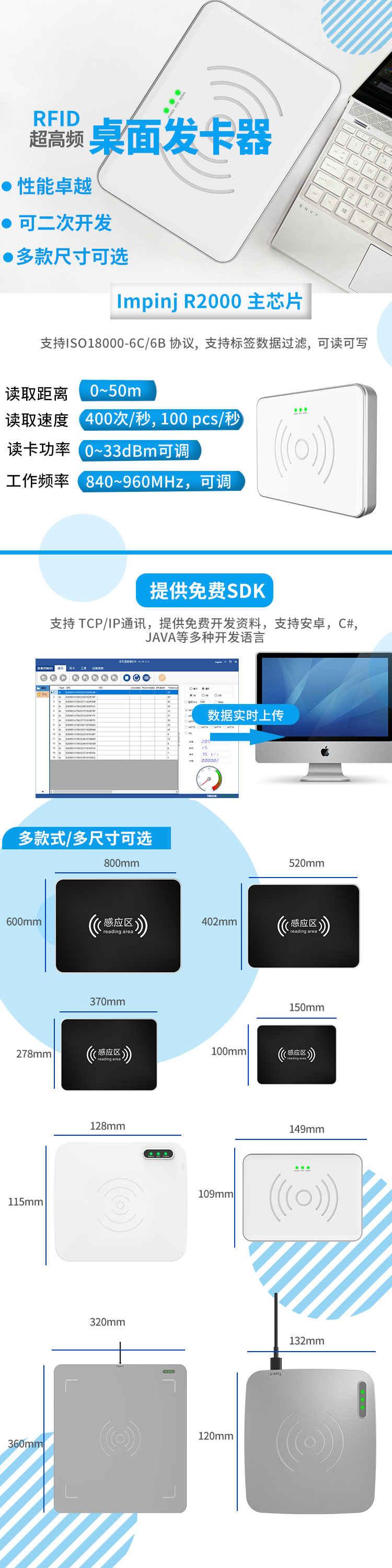 • 超高頻rfid桌面式讀寫器UHF多標簽批量讀寫電子標簽轉