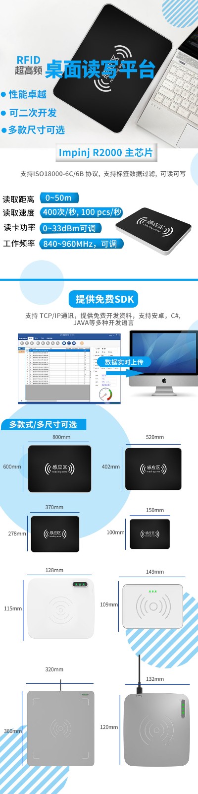 • 超高頻rfid桌面式讀寫器UHF多標簽批量讀寫電子標簽轉