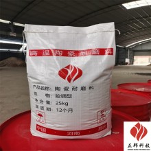 一、 包裝 耐磨陶瓷涂料為25kg/袋包裝,內置塑料袋小包裝促凝劑(用以調節可塑料初凝時間),同時配桶裝磷酸鹽溶液作結合劑,加入量為袋裝料的12%左右。