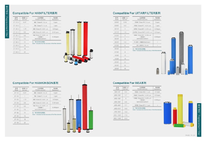 2】國產品牌濾芯均為我司生產的替代原廠品牌濾芯,其過濾濾材采用德國原裝進口HV公司產品,注冊商標為“佳潔”牌。本公司涉及的其它品牌均無品牌意義,只是作為產品型號參照和客戶選型對照使用。進口濾芯和過濾器為原裝進口,有防偽標志。我司長期為國內各大企業貼牌生產各種款式的壓縮空氣精密過濾器濾芯。歡迎來電咨詢!