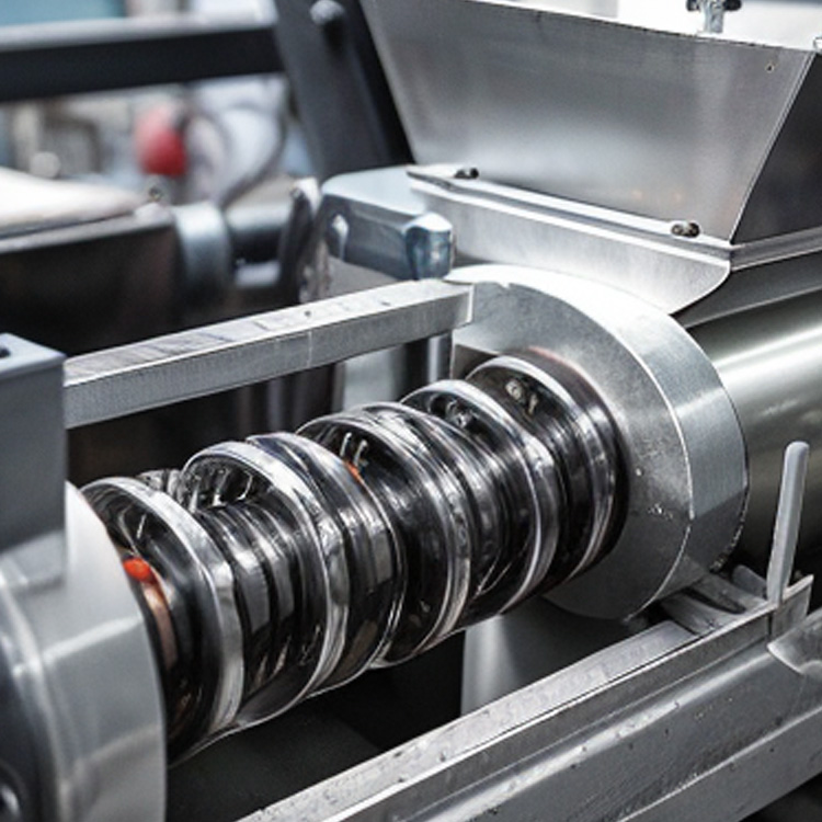 螺旋壓榨機(jī)螺旋式壓榨,工作過程是:輸送螺旋將進(jìn)入料箱的物料推向壓榨螺旋,通過壓榨螺旋的螺距減小和軸徑增大,并在篩壁和錐形體阻力的作用下,使物料所含的液體物(果汁)被擠壓出.擠出的液體從篩孔中流出,集中在接汁斗內(nèi).