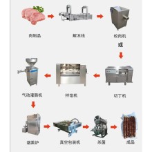 熱銷產品 煙熏爐、真空包裝機、高溫殺菌鍋、夾層鍋、真空滾揉機、真空拌餡機、絞肉機、丸子機、灌腸機、蒸汽發生器、風淋室、斬拌機、去魚鱗機、殺魚機、魚肉采肉機、清洗機、強留風干機、油炸機、真空油炸機、真空脫水機、扎線機、制冷罐、發酵罐、配料罐、真空脫氣罐、冷卻罐、預熱缸、牛奶殺菌機、酸奶機等單品設備,還生產的生產線設備有燒雞加工生產線、酸奶加工生產線設備、牛奶生產設備、醬腌菜生產設備、大棗清洗線、蔬菜清洗線、脫