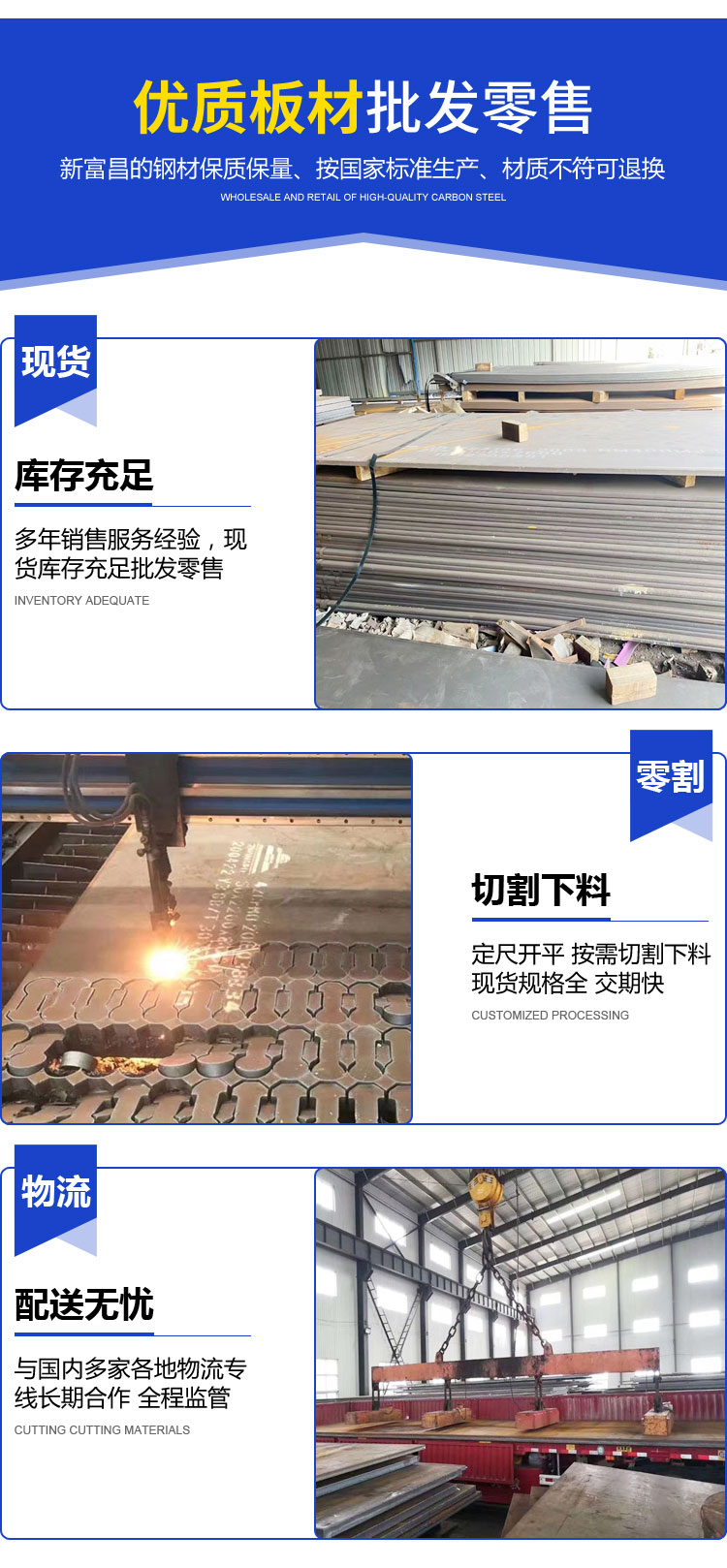公司簡介   無錫新富昌特鋼有限公司專業經營各種進口、國產合金鋼、不銹鋼、碳鋼管材、板材、棒材、型材、管道配件等,為石油、化工和電力行業提供配套(管件)材料。是中國石油化工股份有限公司物資裝備部 的中國石化合金鋼管配送中心,中國石油天然氣集團公司一級供應網絡企業。常年經銷電廠、電站鍋爐耐高溫結構用鋼(12Cr1MoV鋼板;1Cr6Si2Mo鋼板),石油化工用耐高溫板(15CrMo鋼板;15CrMoR中溫容器板);耐腐蝕鋼,耐 腐蝕鋼(ND鋼)09CrCuSb、耐候鋼板09CuPcrNi-A、Corten-B鋼板;20G高壓鍋爐管,15CrMoG高壓鍋爐管,12Cr1MoVG高壓鍋爐管,美標A106B鋼管,SA210C鋼管,WB36鋼管,鋼研102磁...