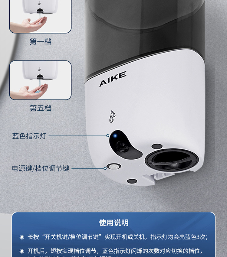 • 艾克(AIKE)不銹鋼高速干手器壁掛式自動感應干手機烘