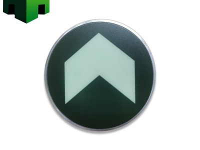 圖上產品為φ84mm,厚度2mm的圓形形狀,顏色為夜光本體顏色,與以往一般采用的不銹鋼板材進行雕刻處理不同,此款產品采用的是鋁板材質,內嵌高亮度pvc地貼,在重量方面不僅更加輕便,同時發光亮度也不遜色于不銹鋼的設計。這款產品現用于北京地鐵,長春地鐵,沈陽地鐵以及青島地鐵等。
