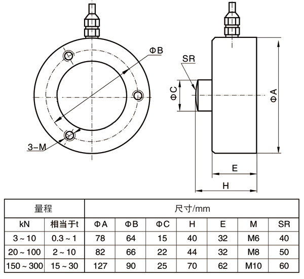 額定載荷: 3,5,10,20,30,50,100,150,200,300(kN)