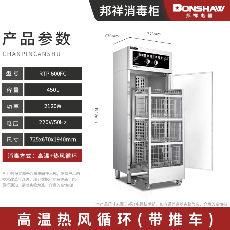 邦祥600FC推車款帶熱風循環無磁不銹鋼消毒柜