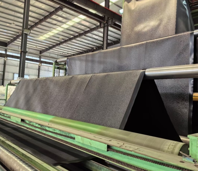 山東泰安糙面土工膜加工工廠,生產(chǎn)工藝是氮氣擠出吹塑法