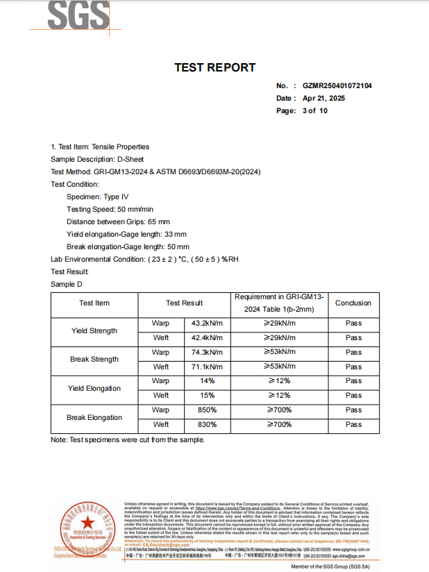 我們的光面土工膜產(chǎn)品做了SGS檢測