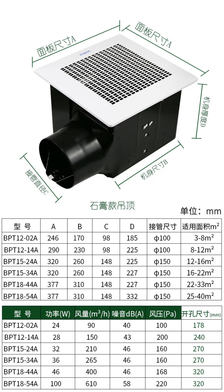 正野天花板管道換氣扇BPT18-44A北京衛生間排風扇BPT18-54A