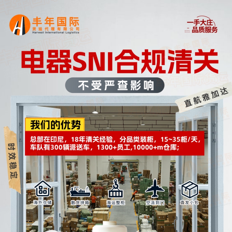 為高效開拓印尼市場,企業(yè)需選擇可靠的貿(mào)易伙伴與物流解決方案。廣州豐年國際物流專為電器出口印尼提供一站式服務(wù),涵蓋國內(nèi)報關(guān)、海運、印尼清關(guān)、雙清包稅、門到門配送等環(huán)節(jié),公司獲得大部分電器SNI認證,助力企業(yè)降低合規(guī)風(fēng)險與運營成本,快速觸達本地分銷網(wǎng)絡(luò)。