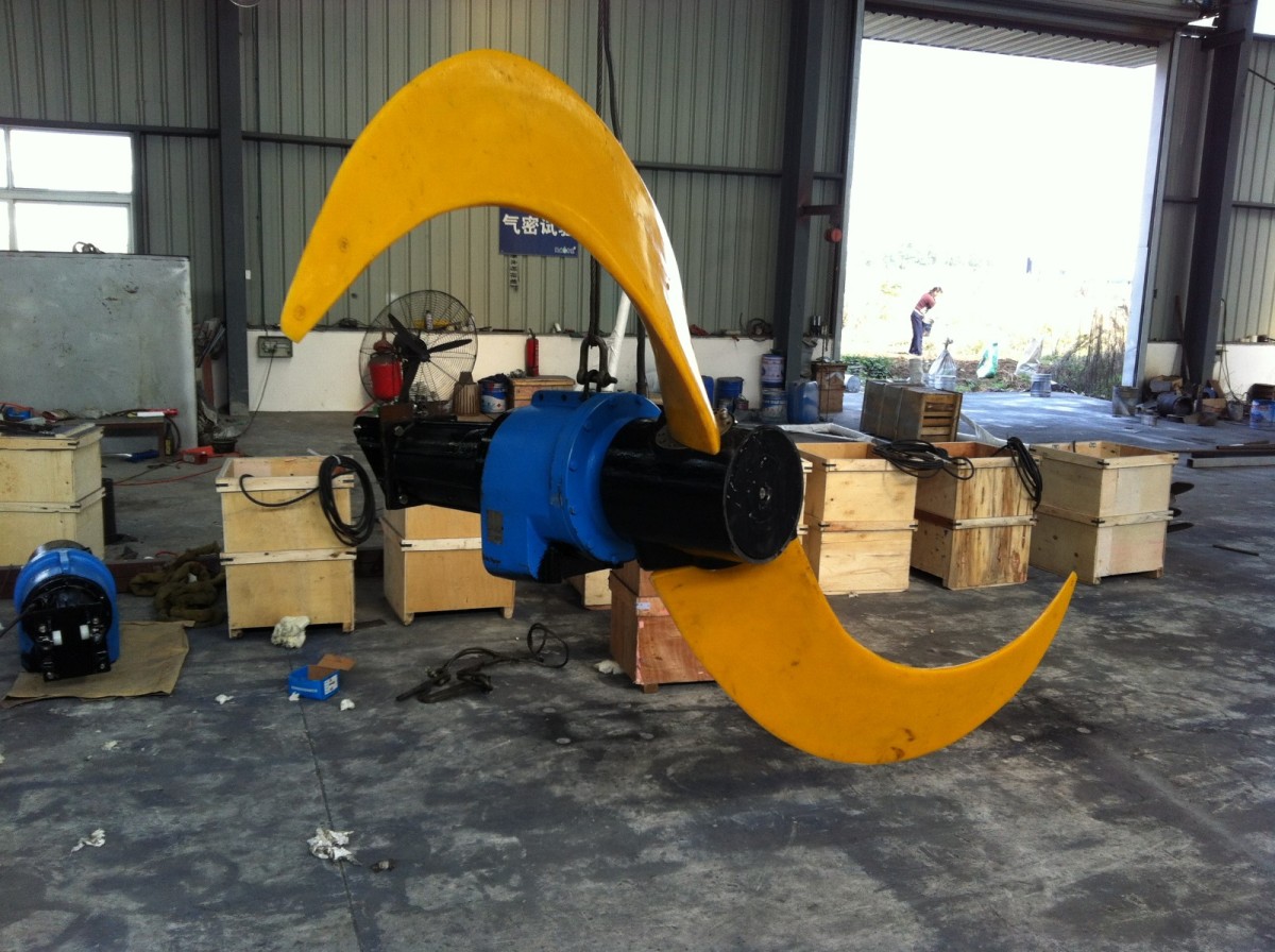 低速推進器適用于工業和城市污水處理廠曝氣池,其產生低切向流 的強力水流,可用于循環及硝化、脫氮和除磷階段創建水流等。