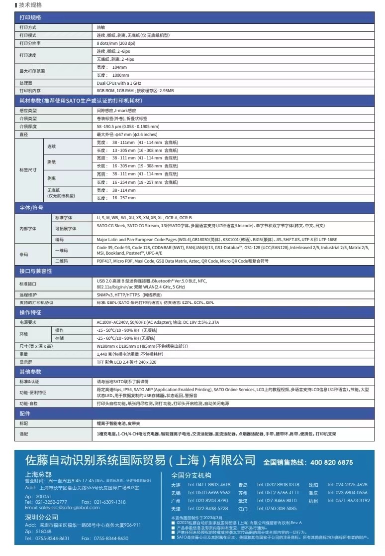 • SATO 佐藤 PW208NX 2英寸便攜式標(biāo)簽打印機藍(lán)牙打印機