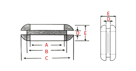 產(chǎn)品編碼規(guī)格(mm)A內(nèi)徑B開孔C外徑D槽寬E總厚包裝/只