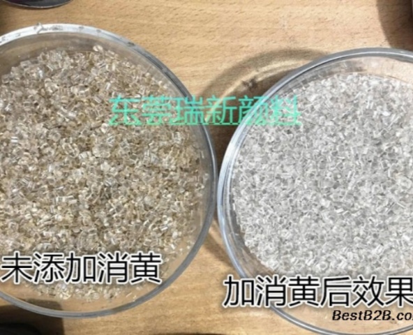 添加配比:添加量小,通常一百公斤材料添加5-10克消黃劑。