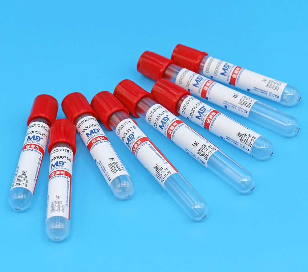產品說明:采血管內璧均勻涂有防止掛璧的硅油,同時添加了促凝劑。促凝劑可激活纖維蛋白酶,使可溶性纖維蛋白變為不可溶的纖維蛋白多聚體,進而形成穩定的纖維蛋白凝塊。快速血清管可在5分鐘內使采集的血液凝固,適用于急診血清系列化試驗。
