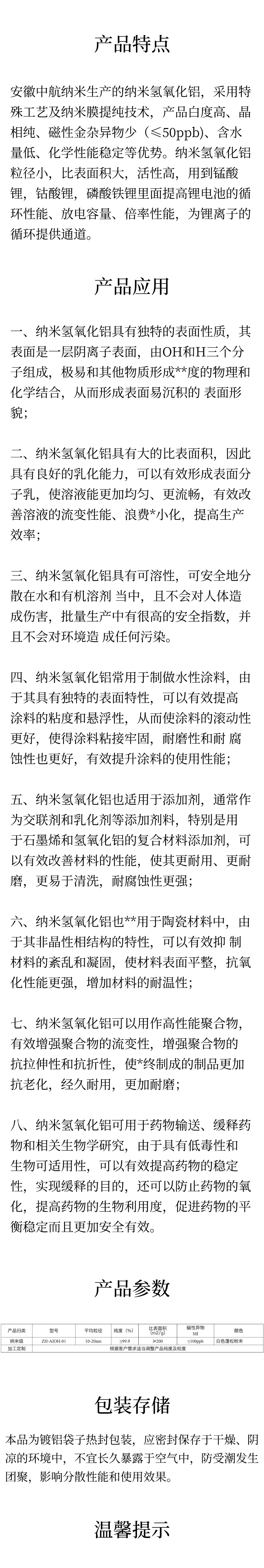 公司簡介 安徽中航納米發(fā)展有限公司,位于安徽省淮南市壽縣新橋國際產(chǎn)業(yè)園興業(yè)大道45號。公司經(jīng)營模式:制造商,主要經(jīng)營:納米氧化鋁,納米氧化鈦,納米氧化鋯,納米氧化鎂,納米碳化鋁,納米氮化鋁,納米氫氧化鋁等詳情聯(lián)系電話13681794594微信同號,注冊資本:3680萬人民幣。公司聯(lián)系人:張弦,公司聯(lián)系電話:13681794594,或聯(lián)系手機:13681794594。公司依托強而有力的技術支持與豐富的營銷經(jīng)驗,為不同類型的客戶量身定制貼心服務,為客戶提供優(yōu)質(zhì)的產(chǎn)品服務。