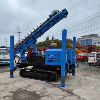 履帶式的螺旋J樁機也稱為光伏打樁機是是-種通過動力頭帶動鉆桿鉆頭向地下打孔鉆進成孔的打樁設備。這種機械的整體機構由行走機構回轉機構動力機構液壓以及傳動機構和操作機構等等幾個部分組成,以其極快速高效地成孔效率越來被人們熟知和接受。