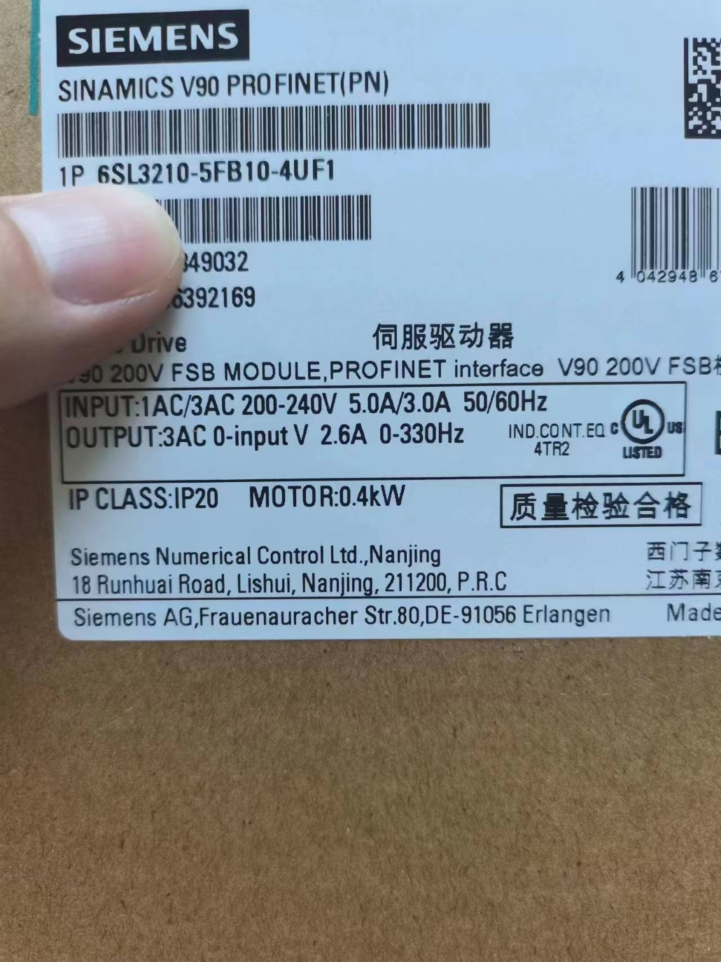 供應全新原裝西門子6SL3210-5FB10-4UF1,SINAMICS V90 ,1/3 AC 200V 0.4KW變頻器