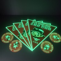 板是將夜光粉和pvc樹脂混合后經(jīng)過一系列工序成型,表面細(xì)膩光滑,發(fā)光強度高,油墨著色好且夜光