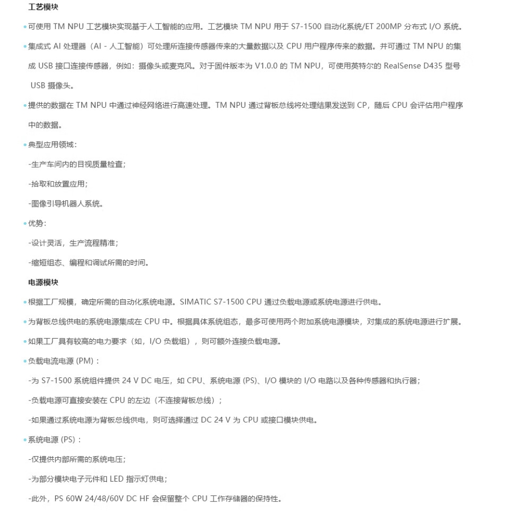 西門子PLC S7-1500系列的CPU具有以下特點: