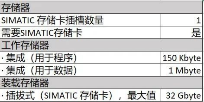 不同型號S7-1500 CPU 存儲器的大小不同,這部分數據信息可以在手冊中技術數據“存儲器”這個部分中查詢到: