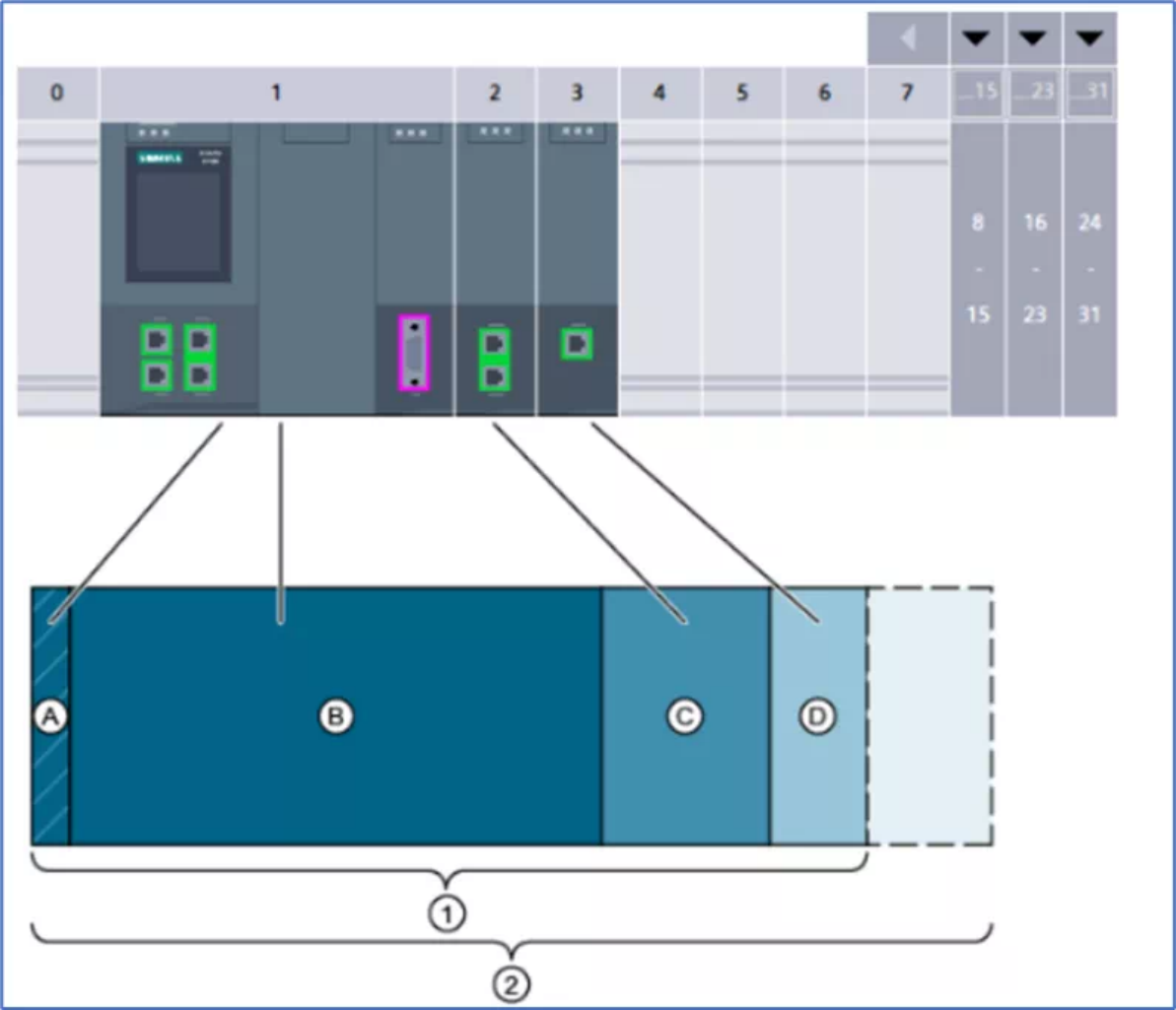 添加CM/CP 模塊可以擴展當前站的連接資源數,但是,當前站大可用連接數取決于選用的 CPU 類型,通常要小于或等于 A+B+C+D 。