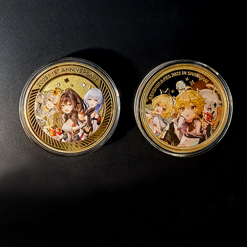 金屬卡通動漫電影游戲明星寺廟神像原神唐老鴨母老鼠彩印鍍金紀念章徽章定制