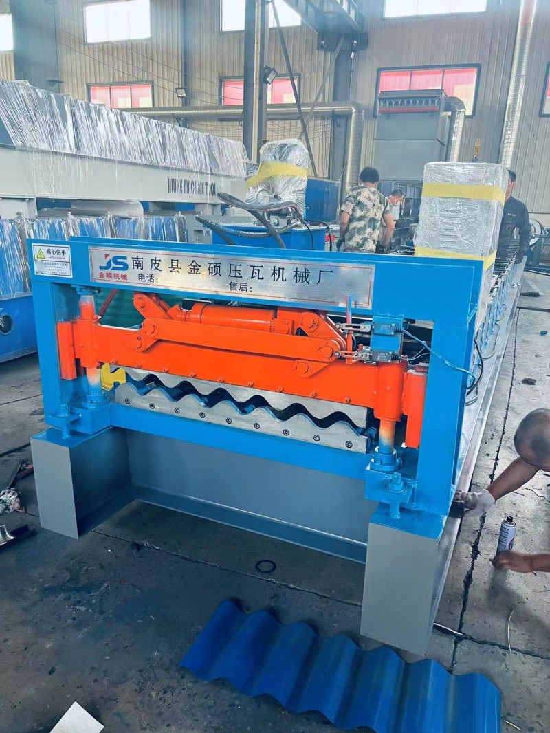 金碩壓瓦機械廠 主要生產彩鋼壓瓦機,復合板生產線,C型鋼檁條機,剪板機,折彎機,拱型壓瓦機等產品.我公司不但生產設備齊全,技術力量雄厚,檢測手段完善,而且有設計人員十幾名,可以按用戶的要求,生產出所需要的產品。我廠設計制造各種壓瓦機設備,因結構合理、操作方便、生產效率高而受到一致好評。我們在傳統壓瓦機的基礎上,又新推出電腦全自動壓瓦機生產線、屋面板、墻面板成型機系列、琉璃瓦成型機系列、樓承板成型機系列、高速護欄設備、雙層彩鋼瓦成型機系列、C、Z型鋼機系列、拱形設備系列,異型壓瓦機系列,應對不斷變化的市場需求和科技的不斷發展,我們要再接再勵,力求企業站在同行業的前列。我公司堅持“以誠相待,互惠互利”的服務宗旨,用過硬的產品質量,完善的售后服務,為客戶提供設備。公司擁有完善的售后服務網絡,能對您的售后提供全力支持,幫助您得到設備,確保您在設備使用過程中及時地解決遇到的一切問題,并得到我們周到的服務。