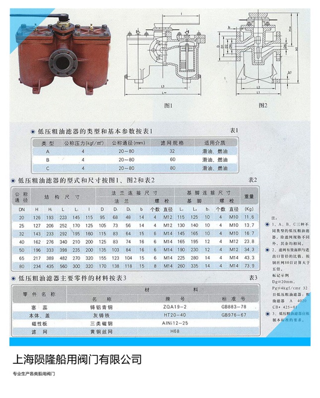 • 船用 CB/T425-2011 法蘭鑄鐵低壓粗油濾器