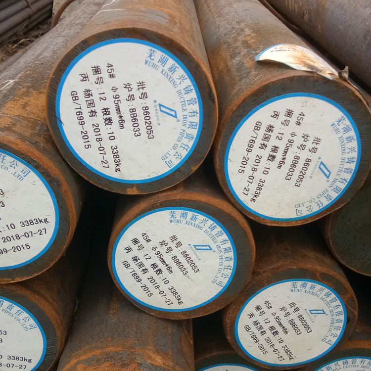 45#圓鋼是指截面為圓形的實心長條鋼材。其規格以直徑的毫米數表示,如" 50"即表示直徑為 50毫米的圓鋼。45#圓鋼分為熱軋、鍛制和冷拉三種。熱軋圓鋼的規格為5.5-250毫米。其中:5.5-25毫米的小圓鋼大多以直條成捆供應,常用作鋼筋、螺栓及各種機械零件;大于25毫米的圓鋼,主要用于制造機械零件或作無縫鋼管坯。