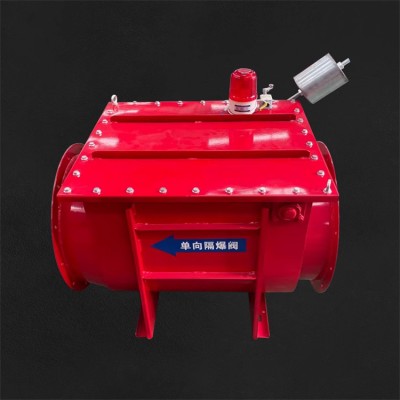 單向隔爆閥正常用于除塵器或旋風(fēng)分離的入口管道上,是一種簡(jiǎn)單、經(jīng)濟(jì)可-靠的的隔爆產(chǎn)品,主要用來(lái)隔斷設(shè)-備內(nèi)部暴炸后產(chǎn)生的火焰和沖擊波傳到上游的管道和設(shè)備。在操作過(guò)程中,單向隔爆閥的閥瓣由管道內(nèi)正常工作的氣流打開或者處于常開狀態(tài)。在被受保護(hù)的設(shè)備內(nèi)部發(fā)生暴炸的情況下,隔爆閥的閥瓣受沖擊波的沖擊而關(guān)閉。